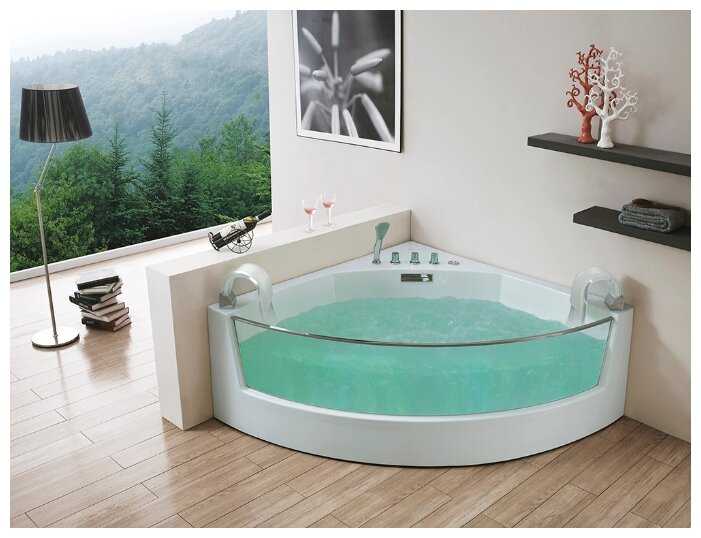 - + Эффектная вставка из стекла. Ванна вместительная, имеются 2 подголовника.