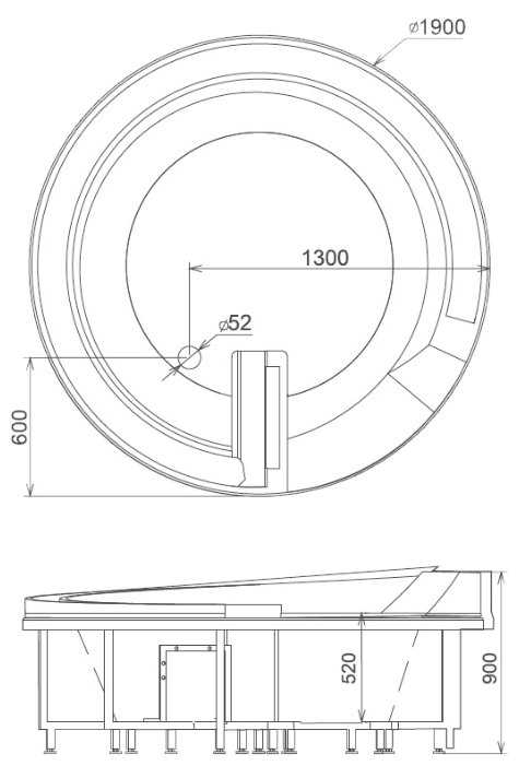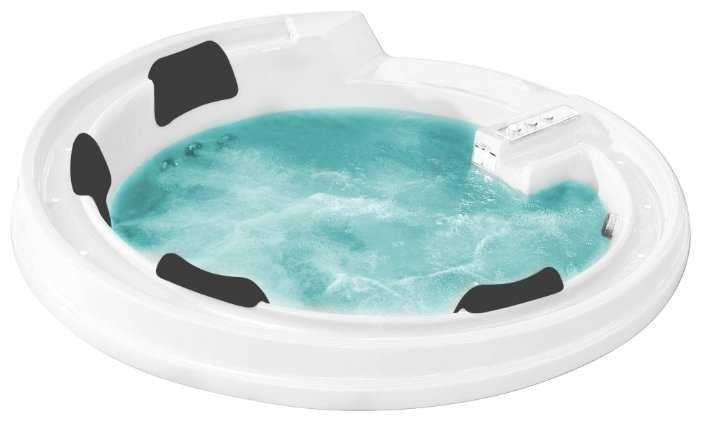 - + Ванна круглая, диаметром без малого 2 метра. Предназначена для двоих, и вдвоем там совсем просторно. Есть все функции, которые должны быть в современной ванной. И массаж - гидро и аэро, и цветотерапия. Всё это делает принятие ванны еще более приятным.