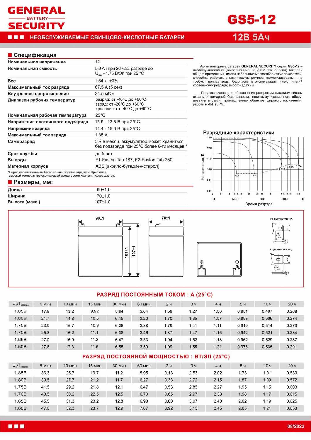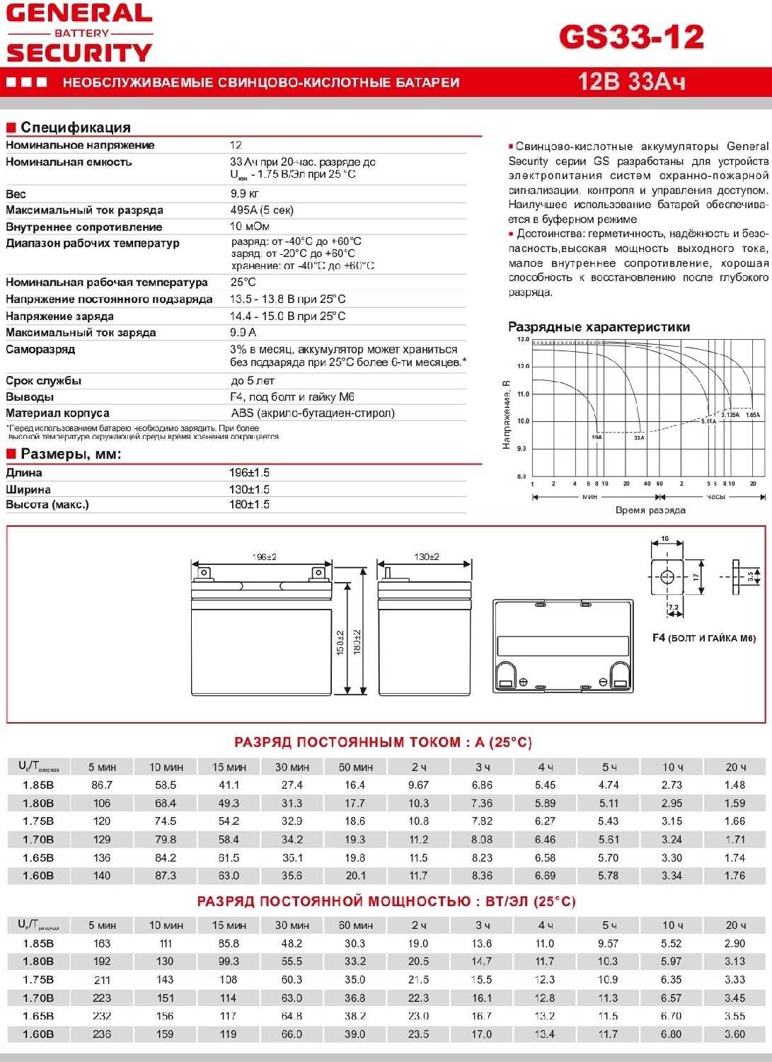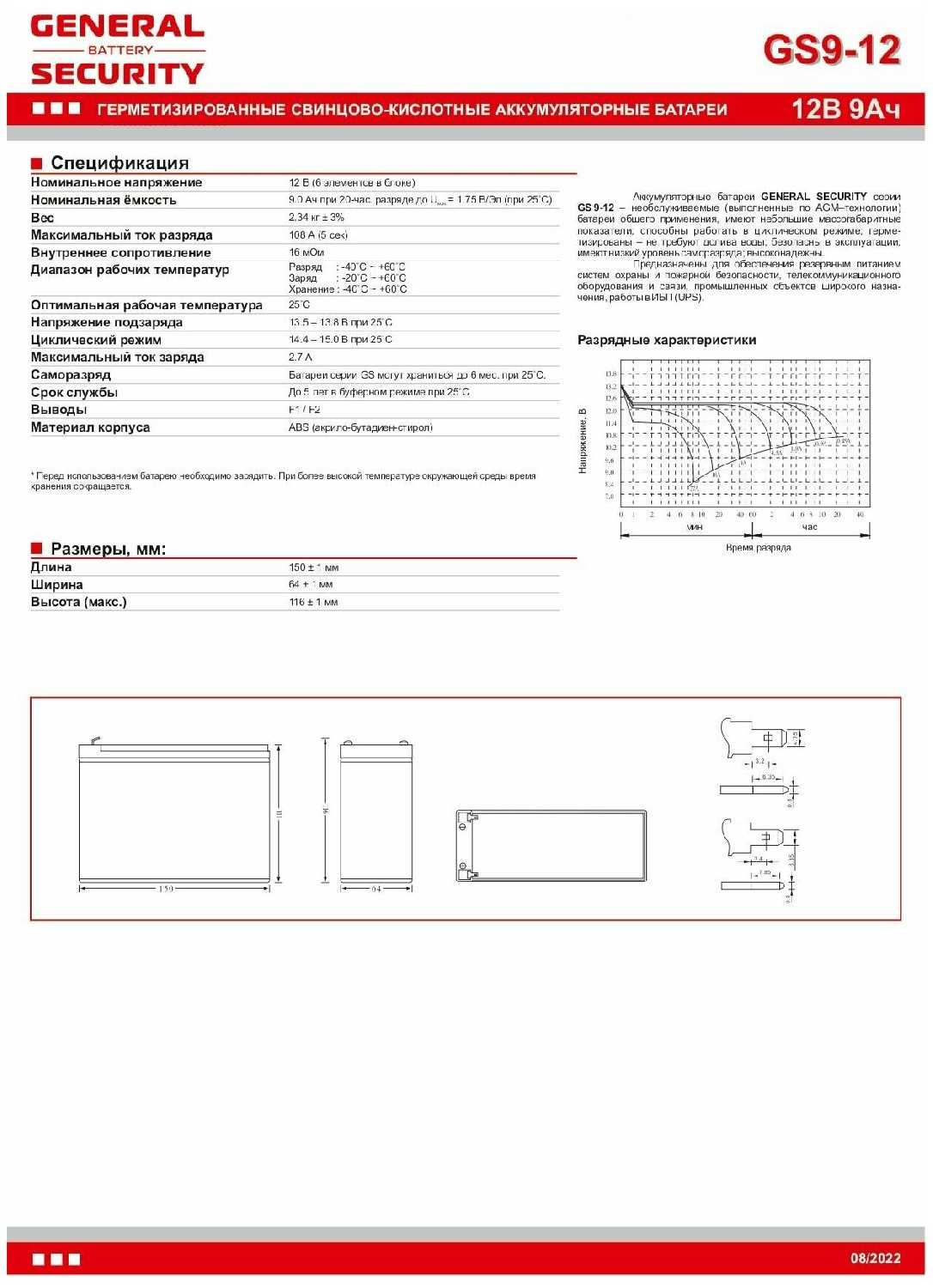 | Дополнительная информация : | АКБ General Security GS 9-12 батарея общего применения имеет небольшие массогабаритные показатели, способна работать в циклическом режиме, герметизирована (работоспособна в любом положении), безопасна в эксплуатации, имеет низкий уровень саморазряда, высоконадежна. |