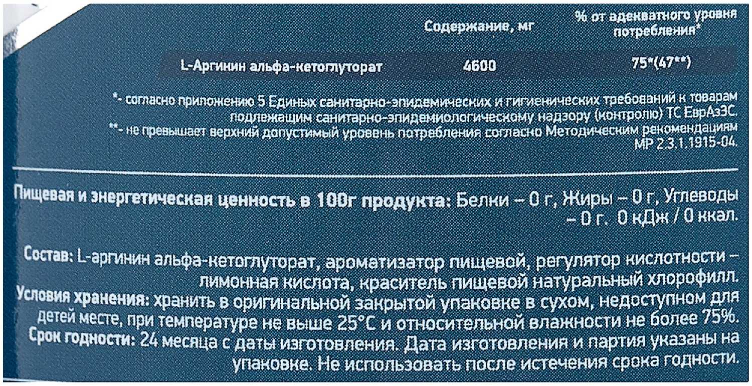 Основной ингредиент : | аргинин, аргинин альфа-кетоглутарат |