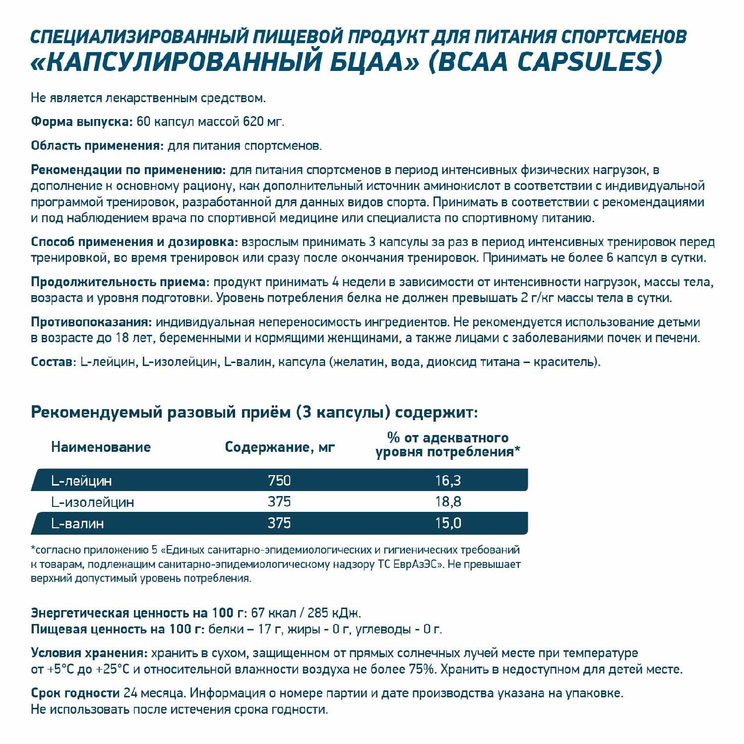 Основной ингредиент : | валин, изолейцин, лейцин |