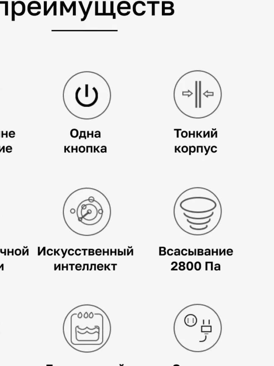 | Особенности : | автоматическая остановка, автоматическое определение зоны уборки, обход препятствий, светодиодная индикация |