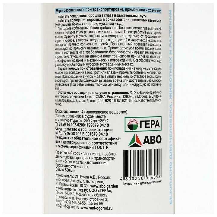 | Способ применения : | Необходимо рассыпать в местах, где будут замечены вредители. Обработать все щели. Не проводить уборку помещения в течение суток. При необходимости повторить |