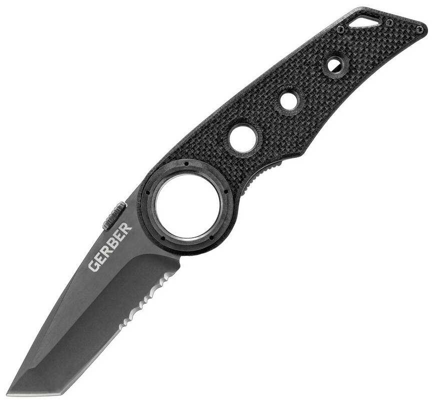 Это мог бы получится отличный городской тактик так как с точки зрения инженерии нож и правда очень крутой! У него не очень толстый клинок в танто, максимально облегченная рукоять. Нож в принципе довольно тонкий и компактный в сложенном состоянии. Но вот качество исполнения... Я понимаю, что это Gerber, что это марка существует в первую очередь в американских супермаркета и т.д. Я понимаю, что нож этот бюджетный, но то, как он сделан... Пожалуй начну с заточки, так как это в первую очередь нож. Она слишком неравномерная относительно сторон клинка и поэтому переточить его правильно займёт прилично так времени. Второй минус - это осевой узел. Да, я понимаю, что тут использовано далеко не самое типичное решение о что тут площадь скольжения в несколько раз, а то в десяток, больше площади скольжения обычных складных ножей с винтом в оси, но механика тут отсутствует напрочь. То есть его не то чтобы флипануть нельзя, чтобы открыть его одной рукой нужно ещё как извернуться так как очень тугой ход клинка и при этом нож не перетянут. Его осевой узел можно провернуть руками без каких-то повышенных усилий. Кстати, по ощущениям сама сталь на клинке не плоха. Да, довольно мягкая, но не крошится, а деликатно чуть подминается. Это тот случай, когда я бы с радостью доплатил тысячу сверху, чтобы получить более аккуратную и шайбы из цветмета в осевом. Но есть и плюсы в ноже: он реально удобен и компактен. Он плоский, клинок практически полностью прячется в рукояти и поэтому нож прекрасно помещается в карман с современным смартфоном. И что меня больше всего удивило в ноже, так это клипса и то, как к ней подошли! У нее утоплены винты, но при этом клипса не утоплена в рукоятке, а есть маленькая углубление под специальный загиб кончика клипсы, чтобы Вы никак не могли зацепить клипсой штаны. Это просто гениальное бюджетное решение, которого я не видел раньше на ножах за 10 и 15т.р. В общем, к ножу надо положить руки, увы, но его внешний может простить практически всё)