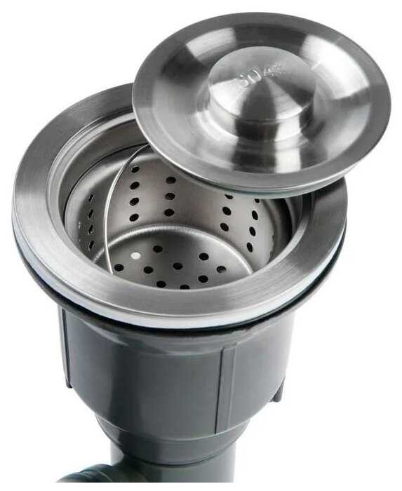- Ситечко-сетка с мелкой перфорацией эффективно задерживает пищевые отходы, но острые края ситечка оставляют царапины на дне.