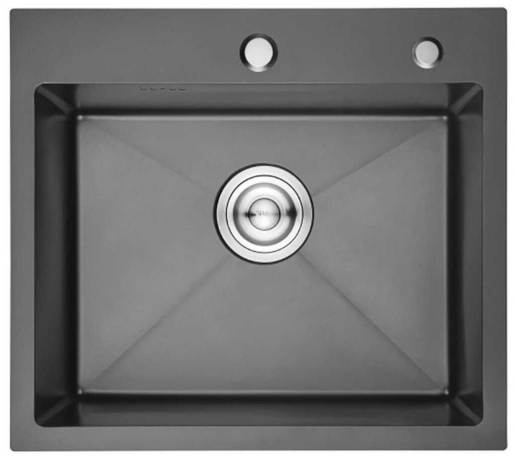 - + Стильная раковина с хорошей геометрией и черным напылением как раз под цвет черного камня. Приобреталась для подклеивания к нижней части гранитной столешницы. Метал достаточно толстый, что заметно снижает уровень шума. В комплекте есть комплектующие (сифон, донный клапан и прочее).