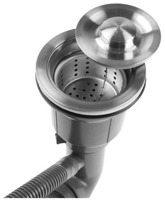 - Сифон с хромированным покрытием в цвет мойки предотвращает визуальный диссонанс.