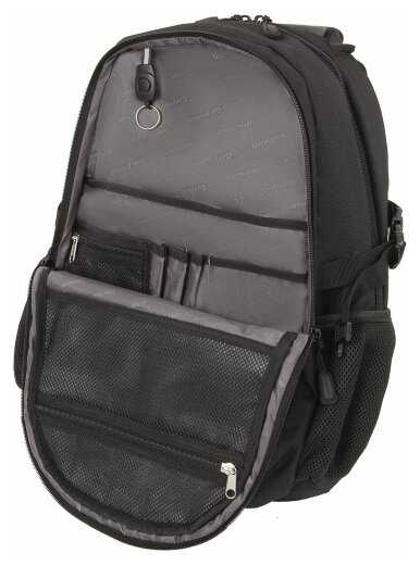 - + дизайн - стильный, ничего лишнего в облике, очень функциональный, куча отделений, одно большое, в нем же отсек для ноутбука, одно для мелочей с множеством карманов. нравится качество изготовления, швы прошиты хорошо, нормальная фурнитура, лямки крепкие