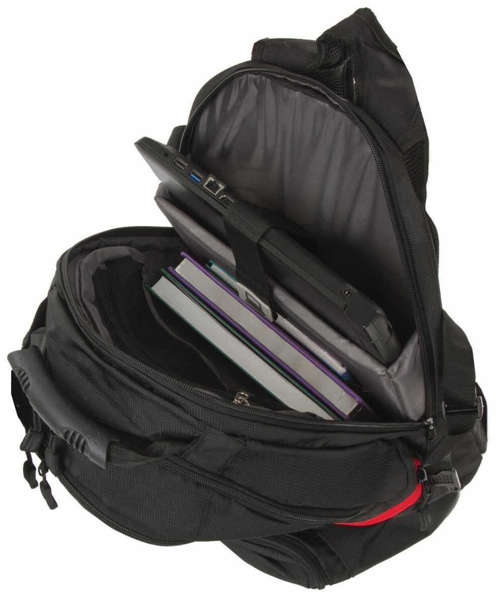 - + Очень полезный, крепкий стильный рюкзак с рукавом для техники