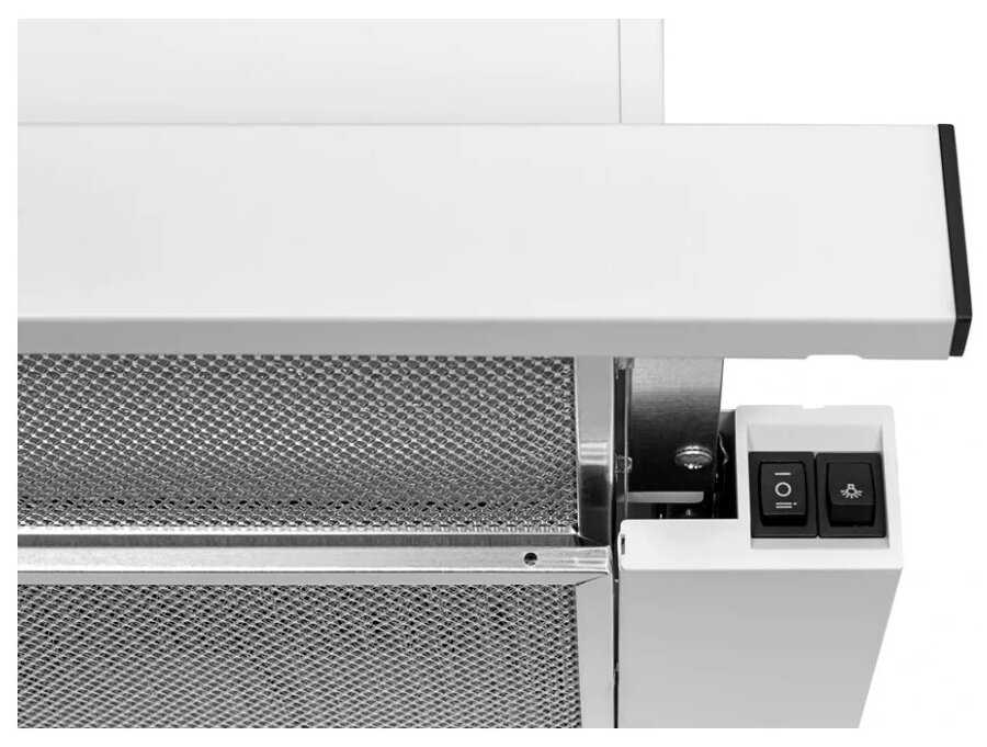 - - хлипкая конструкция, нет фильтра в комплекте для использования вытяжки в режиме рециркуляции.