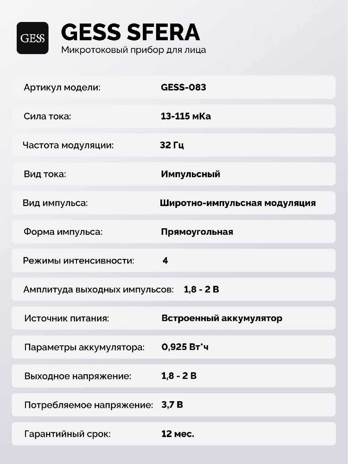 Характеристи Gess Sfera