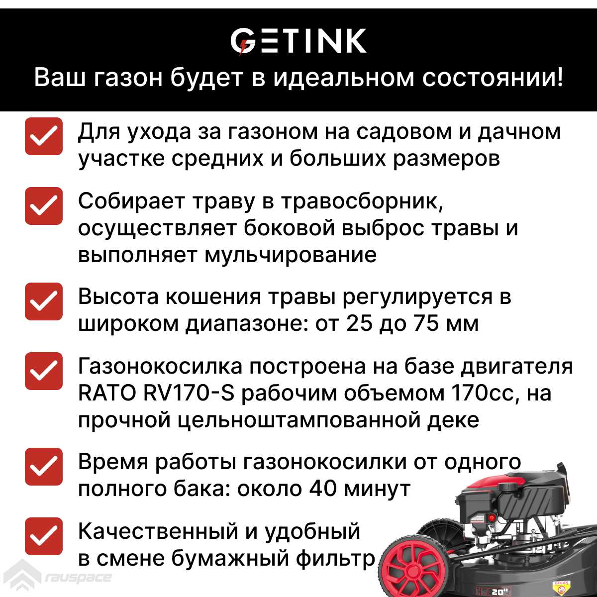 Отзывы о Бензиновая газонокосилка GETINK GLM51S