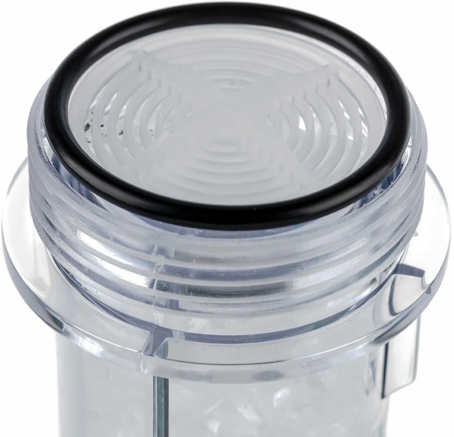 Прозрачность колбы — ключевое преимущество: она позволяет визуально оценить уровень полифосфата, степень загрязнения или наличие белых солевых отложений. Пользователи ценят это для своевременного обслуживания, например, при использовании на дачах или с насосными станциями. Однако уязвимость пластика к трещинам снижает долговечность такого решения. -