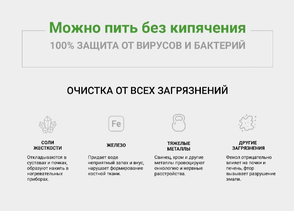 - Устранение привкуса хлора и посторонних запахов, вода приобретает нейтральный вкус.