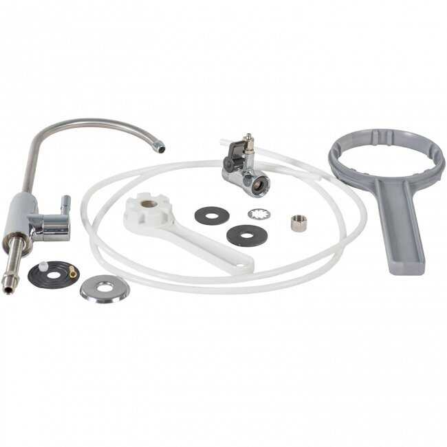 - - В работе не нашёл, но в комплекте обязательно нужно покупать кран для чистой воды, он не всегда нужен, а комплектации без крана нет.