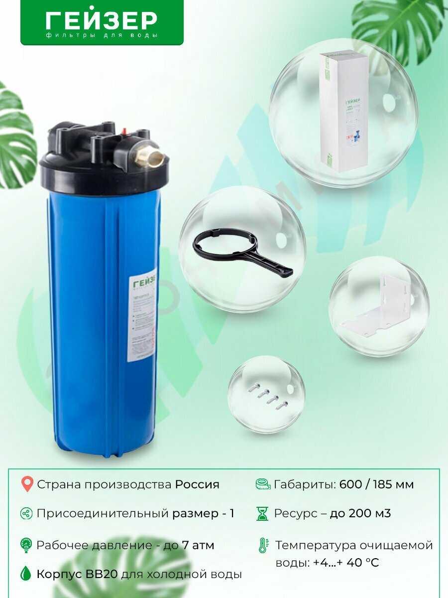 Купил и установил две колбы. У одной разорвало корпус после 8 месяцев эксплуатации (всего в системе установлены 4 колбы, давление 5 атм). Пока обнаружили проблему и отключали систему залило весь подвал по колено воды. Продавцы в магазине где был приобретен товар объяснили это тем, что при установке перетянули саму колбу и корпус лопнул от избыточной нагрузки при гдроударе. Купил колбу другого производителя. При замене пришлось снимать всю систему. В процессе снятия и установки системы очистки обратно, при затягивании - лопнул корпус второй колбы "Гейзер" в месте вкручивания фитинга. Пришлось тоже менять на другого производителя. Вывод: Не качественный материал корпуса. При установке не применялись большие нагрузки. В установленной системе очистки эксплуатируются колбы трех разных производителей, работает система более 10 лет, все колбы работают без нареканий, проблема только с "Гейзером", лопается корпус при нагрузках не превышающих допустимые. Итог: Выброшенные деньги, потерянное время залитый испорченный подвал.