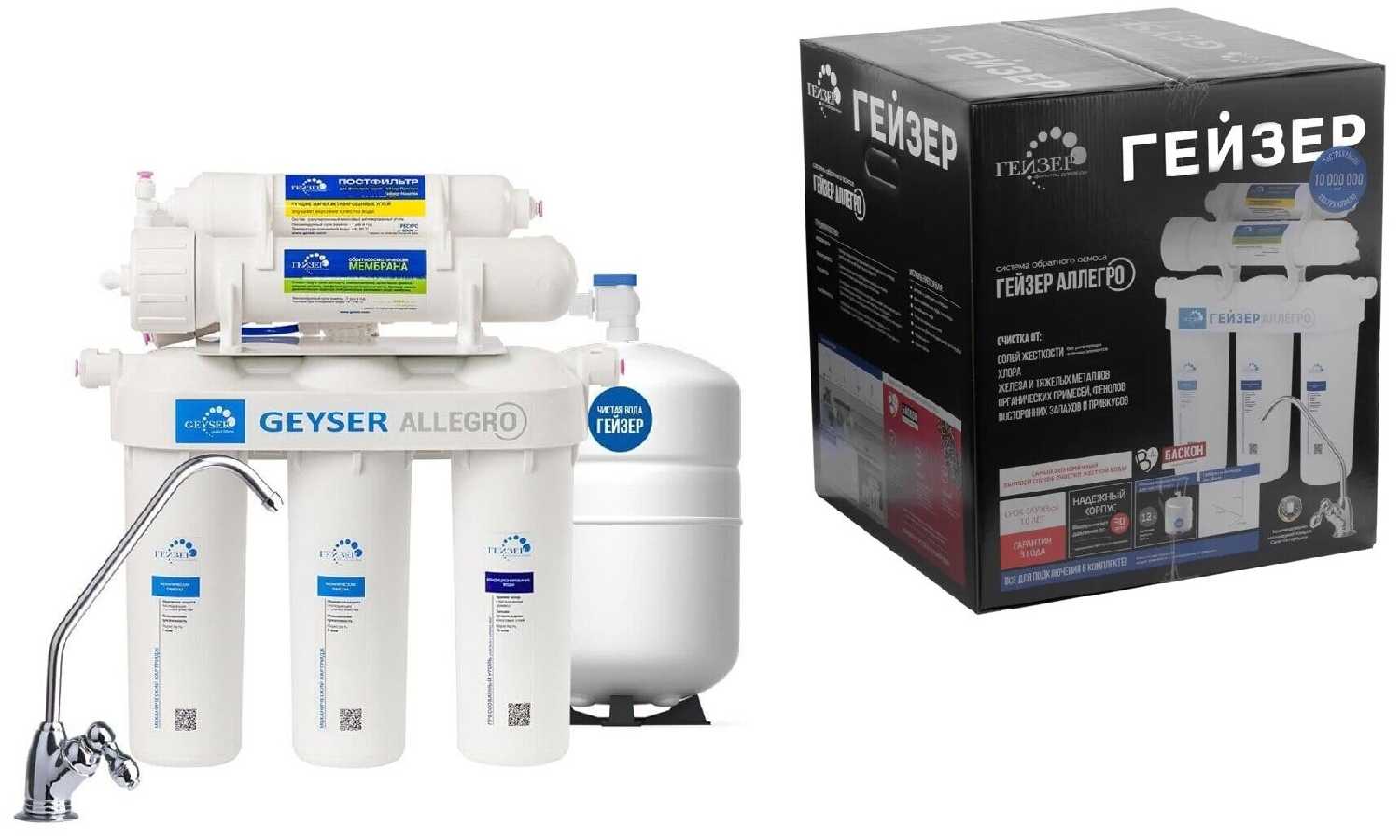 Отзывы о Система обратного осмоса Гейзер Аллегро с краном, с баком на 8 литров/Фильтр под мойку Гейзер/Водоочиститель Гейзер Аллегро 20049