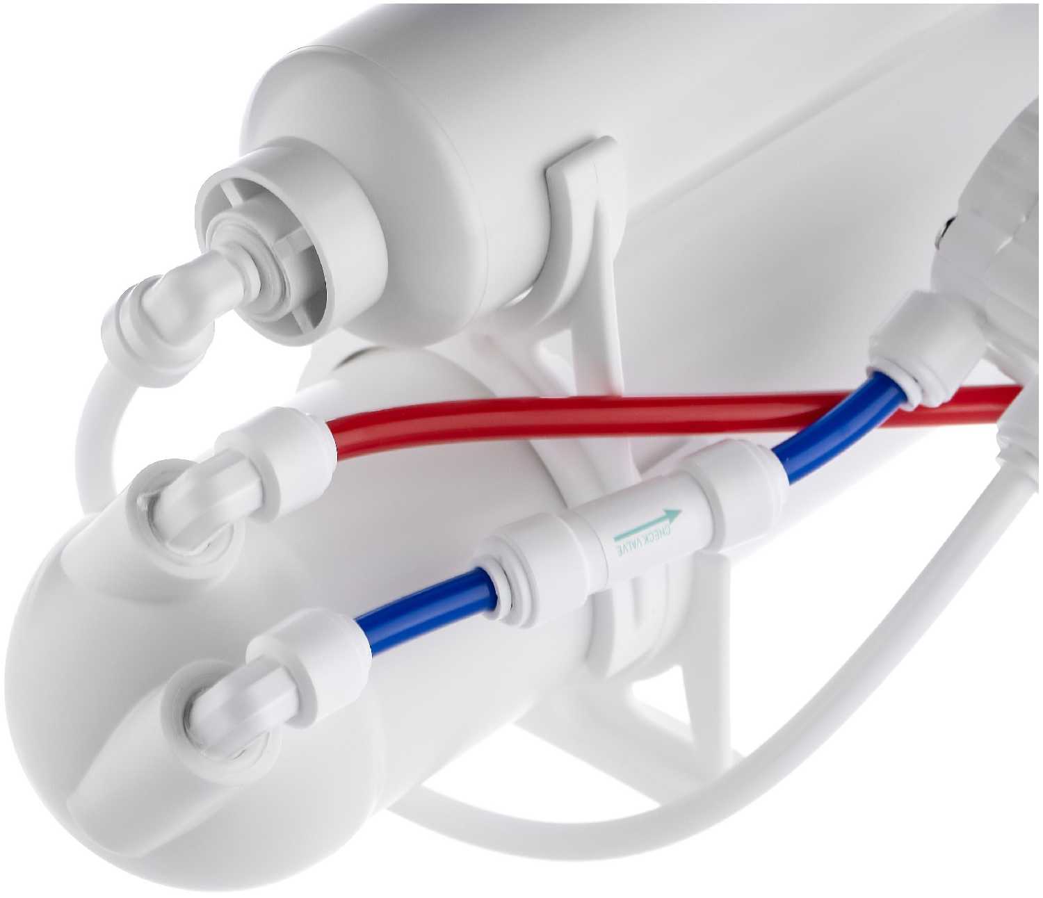 - В версии с баком медленнее из-за мембраны 50 GPD.