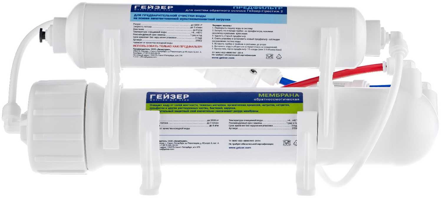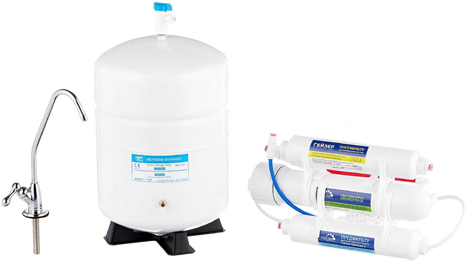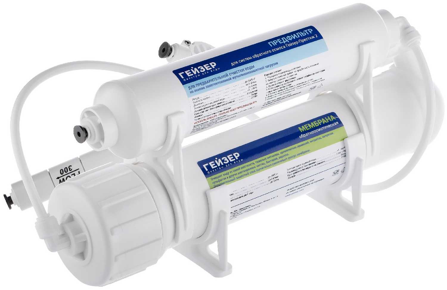 - + Плюсы фильтра Гейзер Престиж 2 (без бака) , цена, компактность, простота установки своими силами. Кран №4 (перекрывает воду на входе в фильтр, а не на выходе, что должно исключить протечки в вашем отсутствии, если что, или возможные утечки воды в дренаж) Модель без бака, следовательно его не надо периодически чистить. Вода действительно очень качественно очищенная, через мембрану, обратным осмосом.