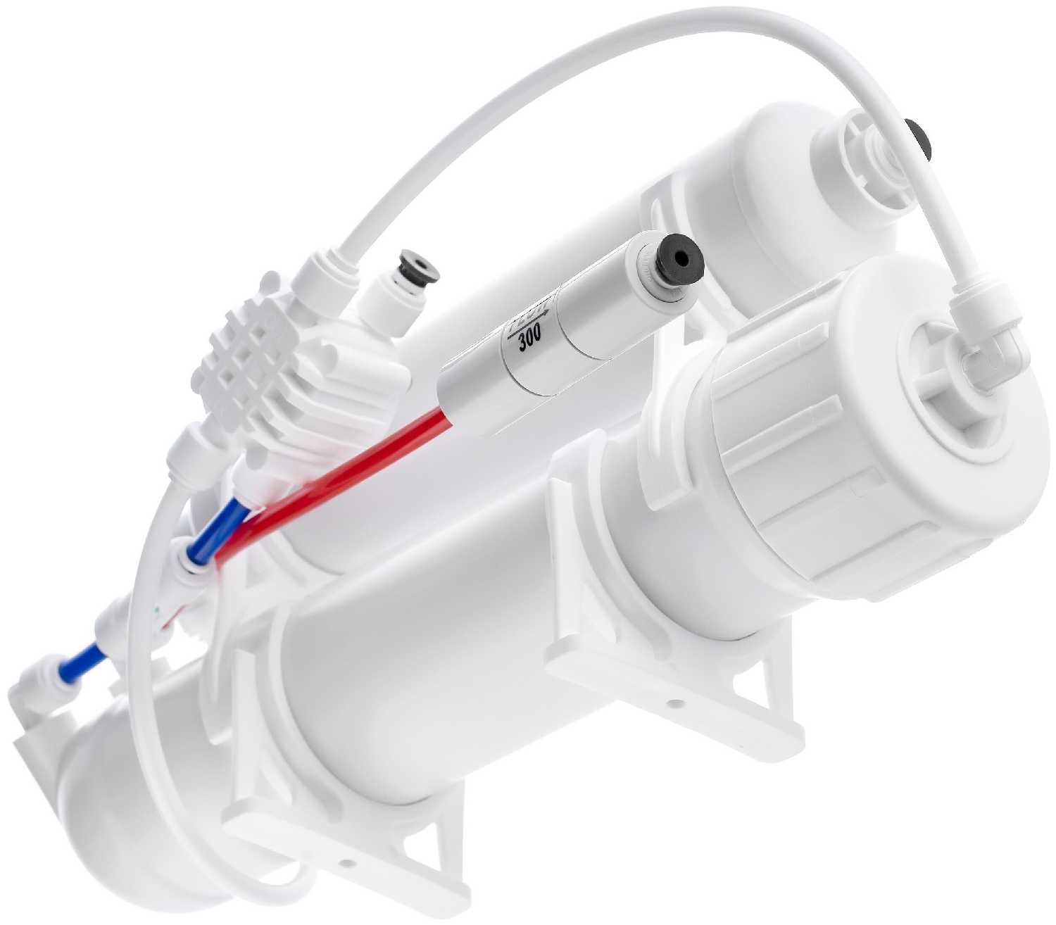 - + Небольшой размер по сравнению с традиционной компоновкой обратного осмоса при одинаковом качестве воды на выходе.