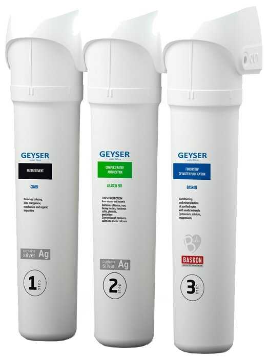 - + Приятный внешний вид, поставили просто на пол под мойку, (мойка установлена на тумбу), фильтрует отлично, вода не пахнет, на вкус приятная, пьем воду прямо из под фильтра. На официальном сайте «Гейзер» в характеристике указано, что удаляет вирусы и бактерии. Не многие фильтры могут этим похвастаться. Подключается очень легко, если есть мужчины...