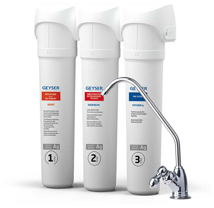 - Отсутствие ионообменных смол в стандартных картриджах, акцент на механическую и угольную очистку.