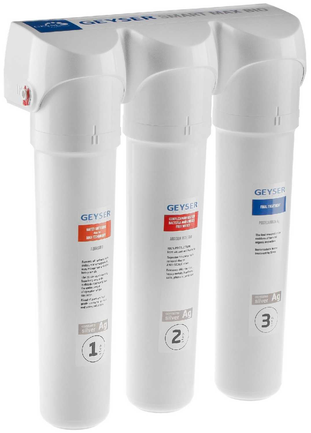 - + Решил попробовать этот новый фильтр от компании Гейзер, до этого много лет пользовался старым Гейзер Био, пришло время менять картриджи, решил поменять фильтр, так как цена была по акции вкусная. Вчера поставил Гейзер Смарт Макс Био-на мой вкус , вкус воды из этого фильтра другой, лучше, мне понравилось. Советую к приобретению. Еще совет-закручивайте стаканы картриджей до щелчка, чтобы метки на корпусе совпали, сейчас мало кто читает инструкцию.