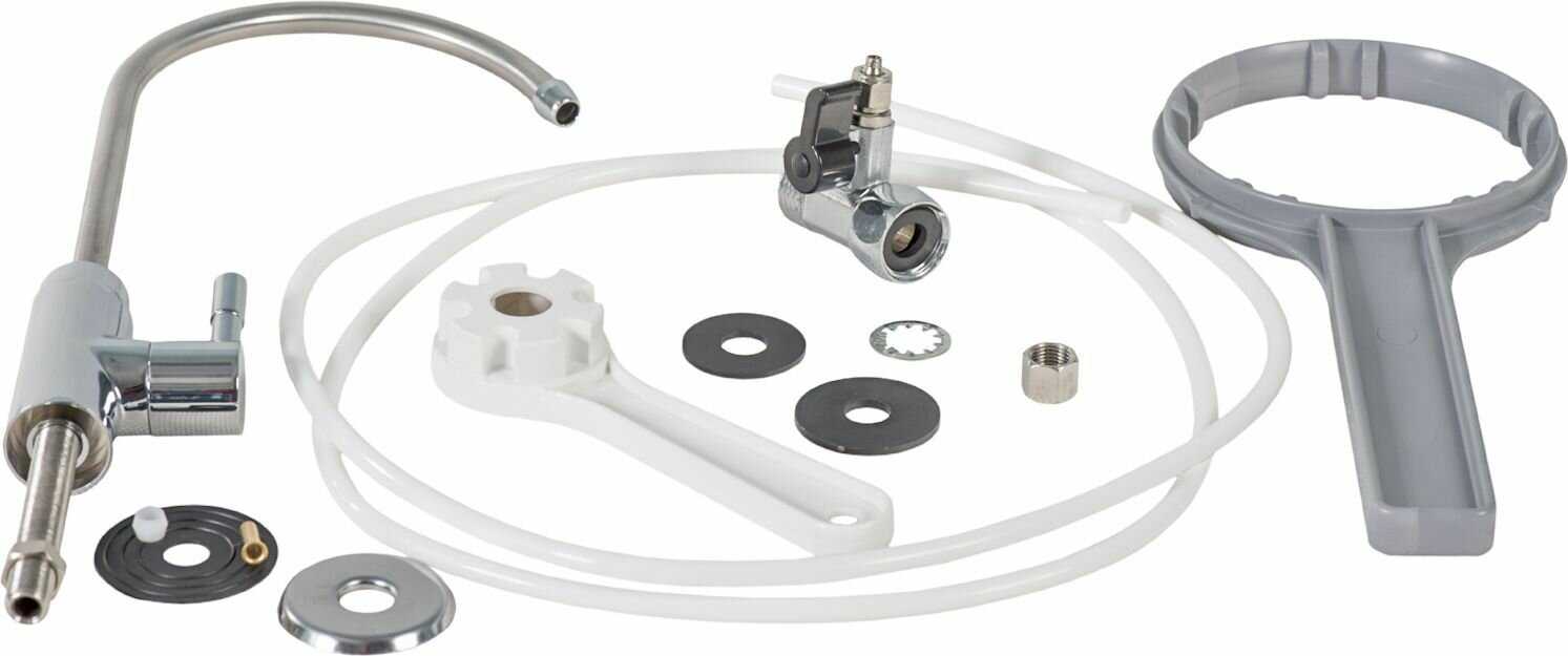 Для установки комплектного крана потребуется подготовить отверстие в раковине на 13мм, так же учтите, что для подключения к готовой системе понадобится докупать гибкие шланги водоснабжения. Это все к тому, что если нет доп.расходников, то можно столкнуться с небольшими трудностями. При вытаскивании пластиковых заглушек с входного и выходного отверстия фильтра - внутренний фиксатор необходимо удерживать внутри пластикового фитинга, чтобы он не зажимал заглушку при вытаскивании. Других сложностей нет.