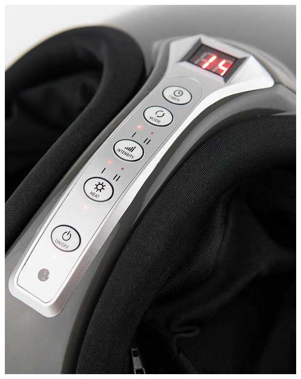 | Особенности : | автоматическое отключение, дисплей, индикация заряда, подогрев, пульт управления, регулировка интенсивности массажа, съемный чехол, таймер |