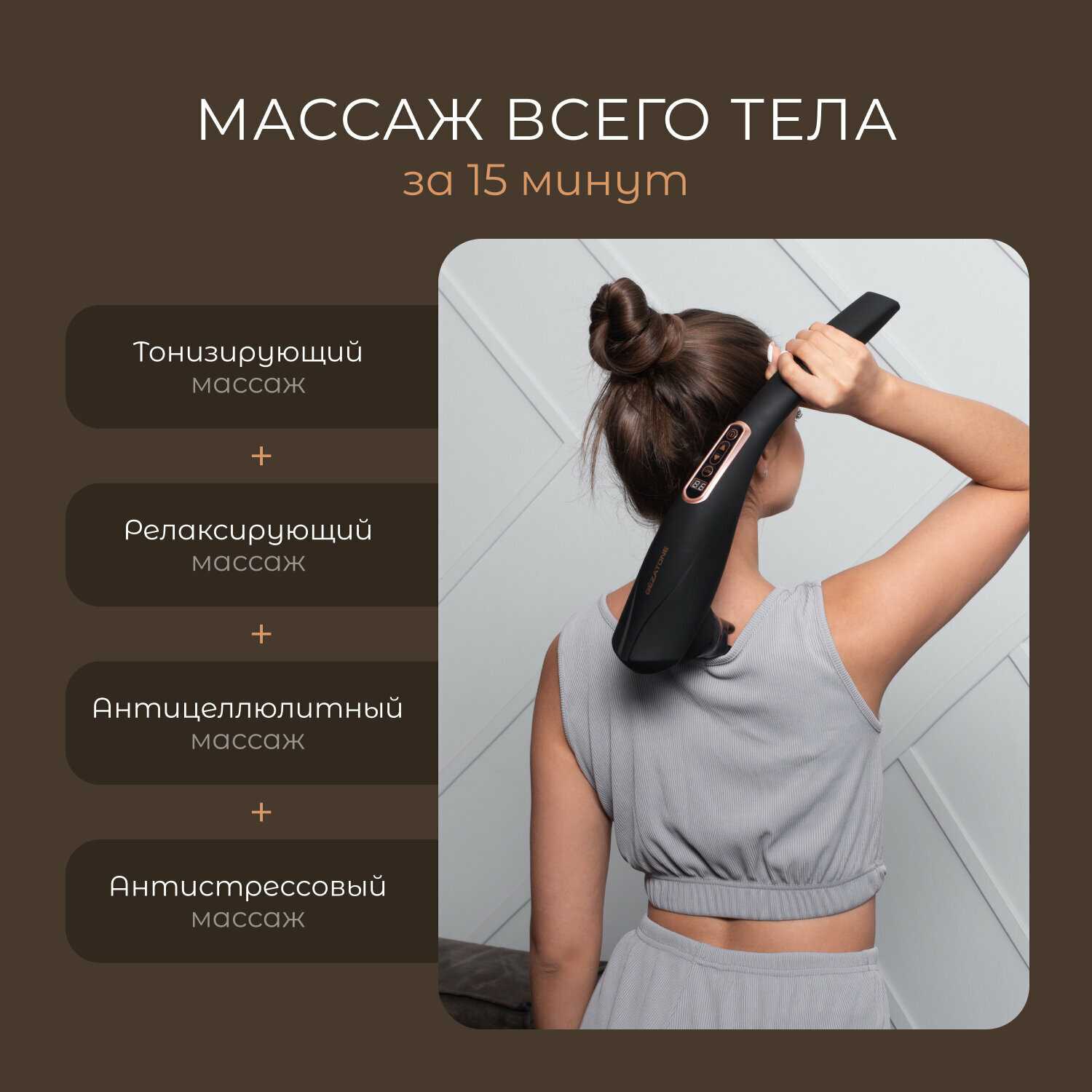 - + Длинная ручка, удобный, снимает боль в мышцах