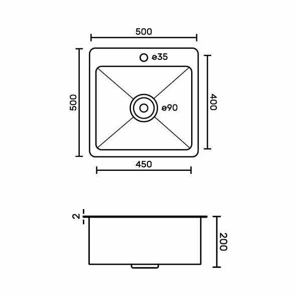 - + Минималистичная мойка, квадратная, снаружи прорезинена. И что важно всего одно отверстие под смеситель. Глубина 20 см, хорошая.