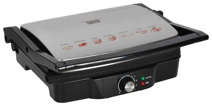 - Высокая мощность обеспечивает мгновенный прогрев, сокращая время готовки до 5–7 минут для стейков, овощей и бутербродов.