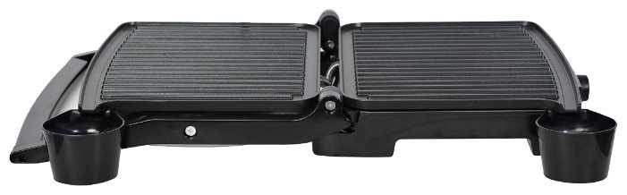 Эту модель можно использовать двумя способами: как контактный гриль, в закрытом виде и как зону барбекю, раскрыв его на 180 градусов.