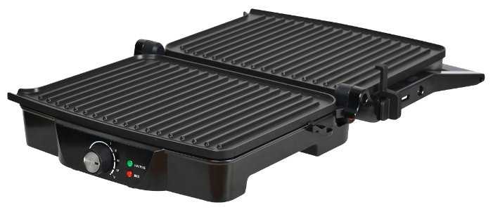 - + Очень быстрый разогрев панелей для дальнейшей жарки. Удобный лоток для сбора жира. Регулировка температуры до 230 градусов, причем имеется возможность регулировки температуры для каждой из панели в отдельности. Режим барбекю с множеством вариантов и видов готовки. С управлением справиться даже ребенок. В комплекте идёт термощуп для настоящих ценителей стейков.