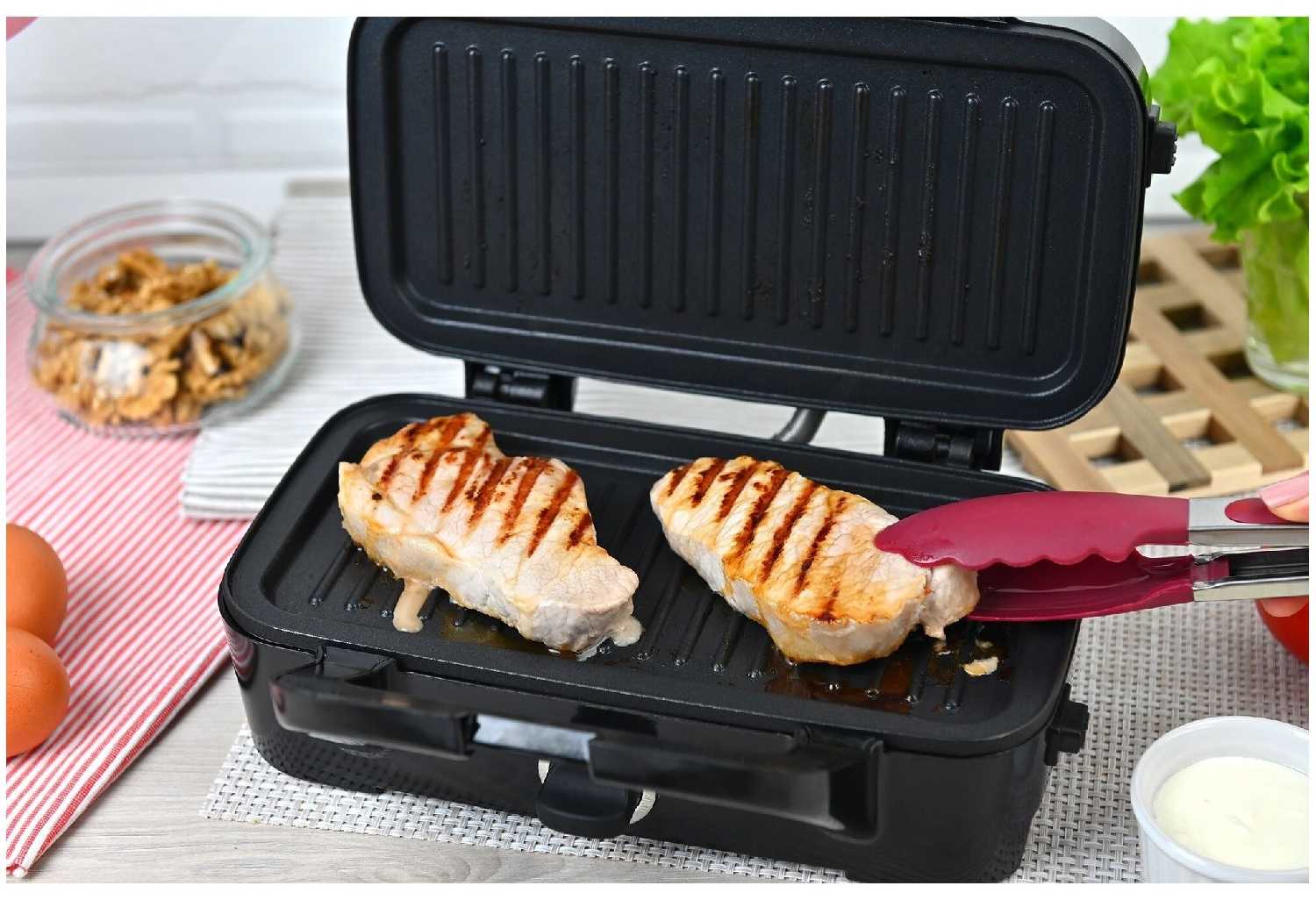 - Рифлёные антипригарные панели оставляют характерные полоски, имитирующие эффект ресторанного гриля.