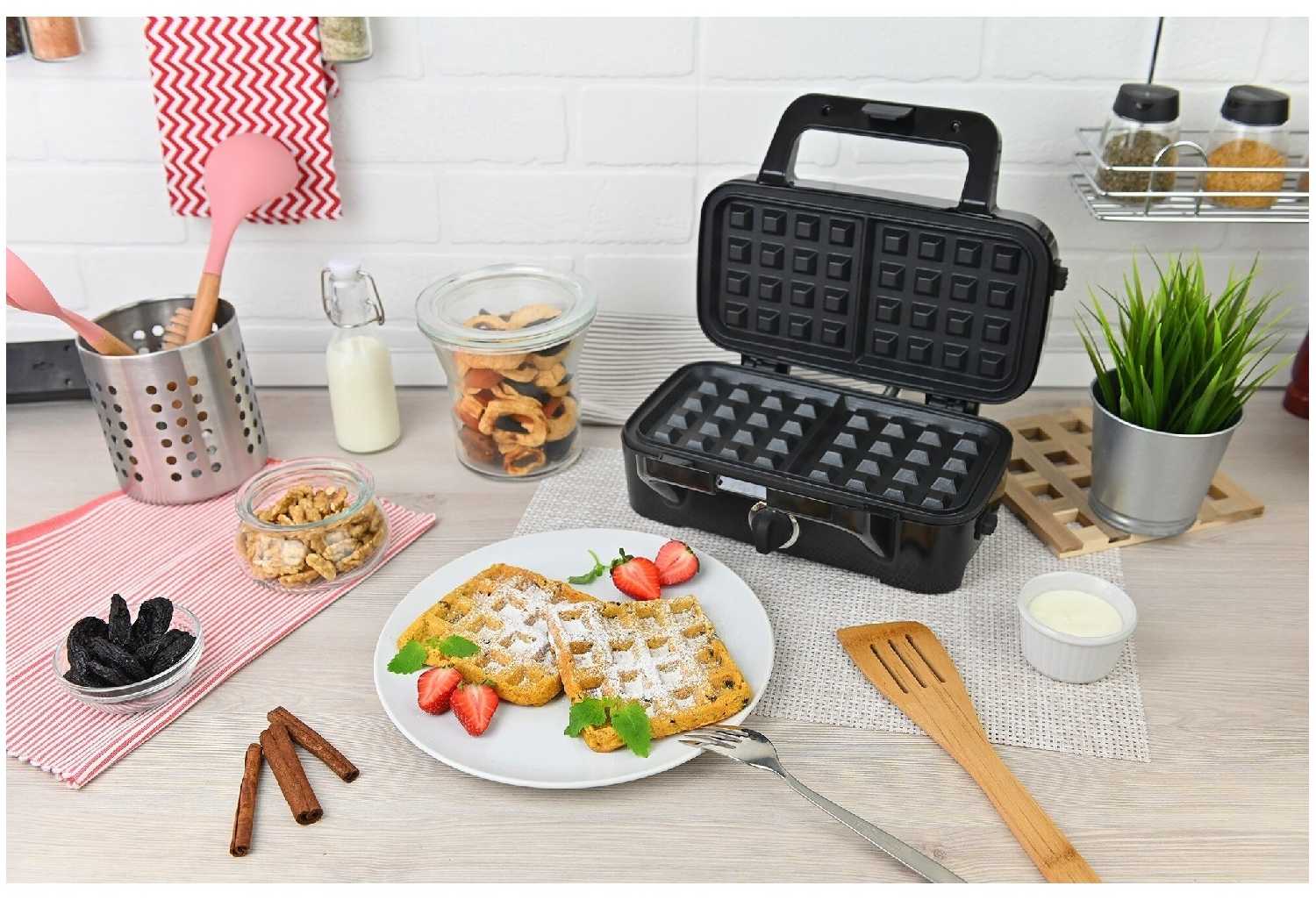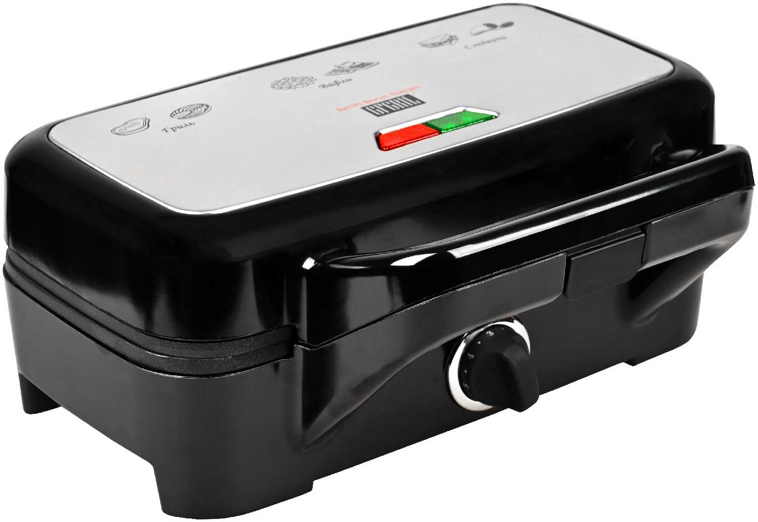 - Механический или электронный регулятор температуры (до 220°C) позволяет адаптировать нагрев под разные типы блюд: от нежных вафель до толстых стейков.