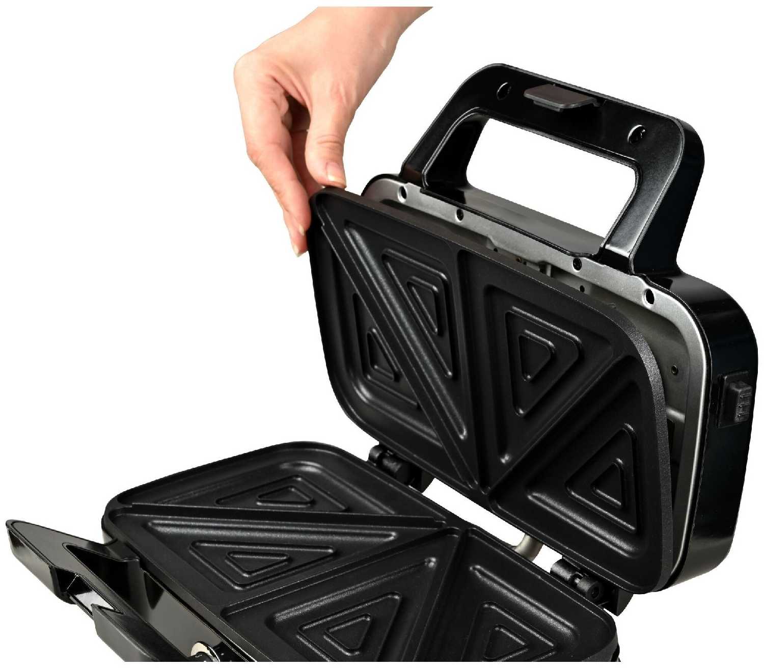 - Глубокие панели для сэндвичей предотвращают вытекание начинки при закрытии.