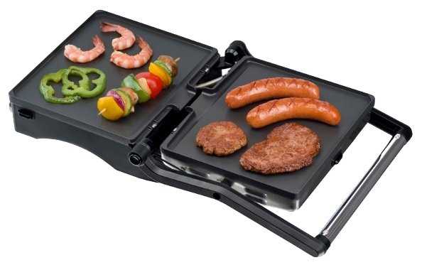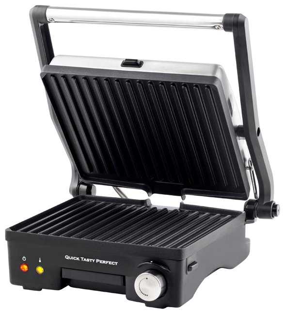 - + Отличный гриль, уже почти месяц готовим на нем каждый день: жарим тосты (не уступает тостеру, но чистить не надо), горячие бутерброды, мясо, котлеты, сосиски, овощи. Панели съемные и легко моются, даже если что-то пригорело (иногда случается, т.к. готовим без масла, но само покрытие хорошее). Нагрев сверху и снизу одновременно, поэтому всё готовится намного быстрее, чем на сковороде, при этом сохраняется сочность, не требуется масло, а лишний жир из мяса стекает в поддон. Можно жарить на 2х панелях сразу, открыв гриль на 180 градусов, что тоже удобно, но от мяса может разлетаться жир, чего не происходит при жарке в закрытом состоянии. Выглядит сам гриль симпатично, места занимает не много, однако, размера панелей хватает на приготовление за один раз 4х бутербродов.