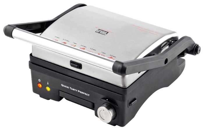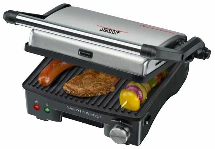 - + Большой, быстро готовит, еда не пригорает, есть таймер и лоток для жира. Сменные панели одна из них двусторонняя. у нас гриль gfgril 180