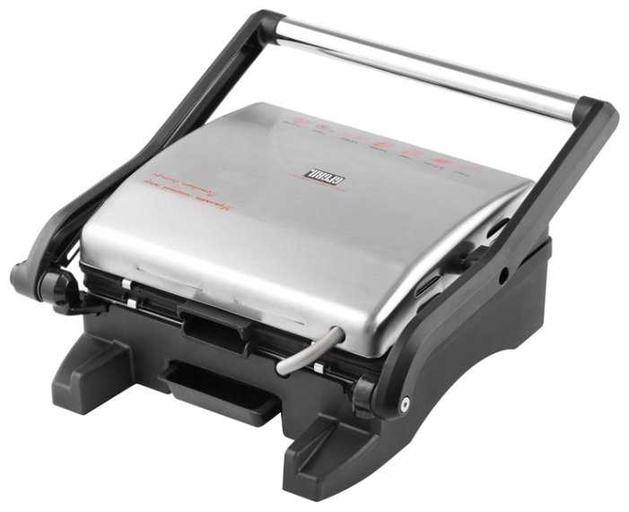 - Подходит для мяса, рыбы, овощей, выпечки (вафли, тосты) за счет регулировки давления крышки.