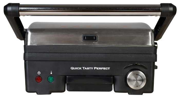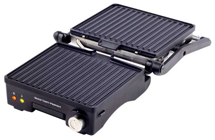 - Работает с продуктами толщиной до 4 см благодаря пружинному механизму крышки.