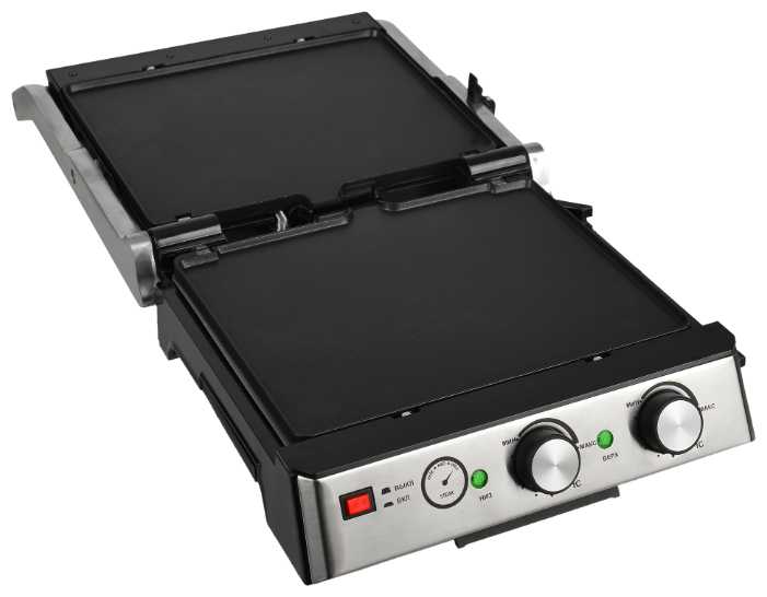 - Мощность позволяет готовить стейки, куриную грудку, овощи или шаурму за 5-10 минут, получая сочные блюда с корочкой и полосками гриля.