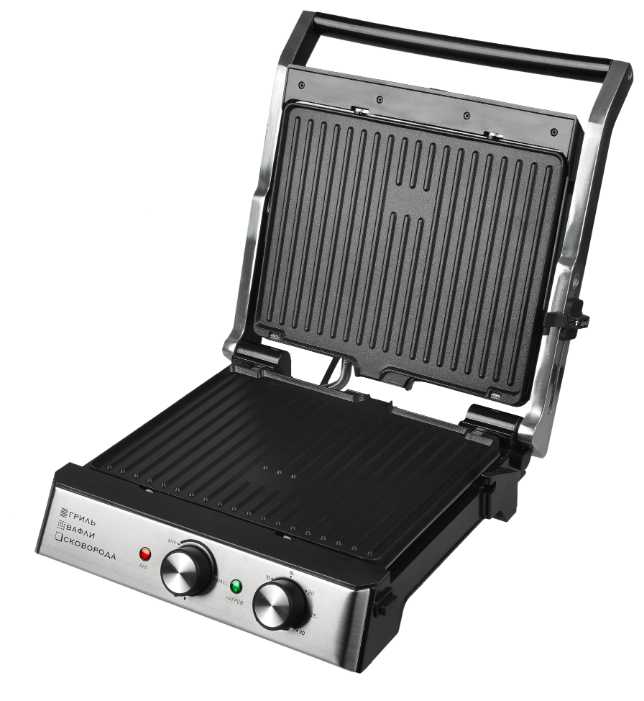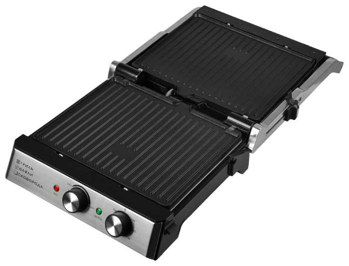 - Рифлёные панели для гриля, гладкие для сэндвичей и вафельницы — универсальность для разных блюд.