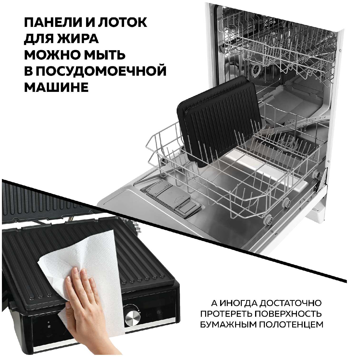 - Минимальное разбрызгивание жира за счёт глубоких рёбер на панелях.