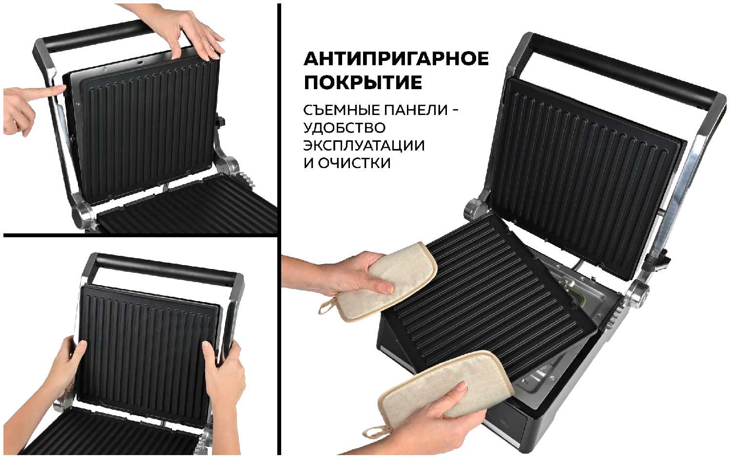 - Съёмные панели с антипригарным покрытием: