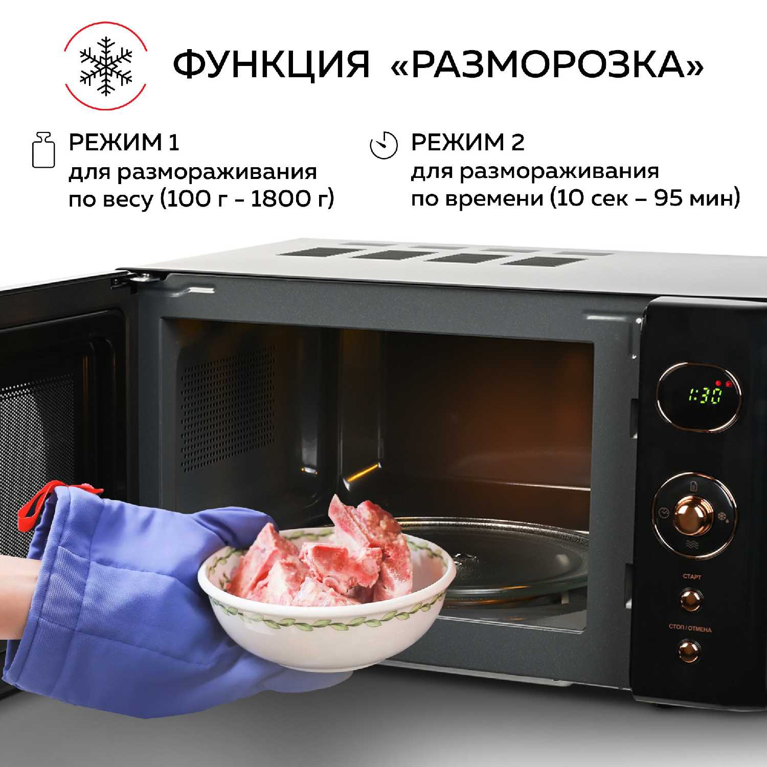 - Режимы работы: разморозка
