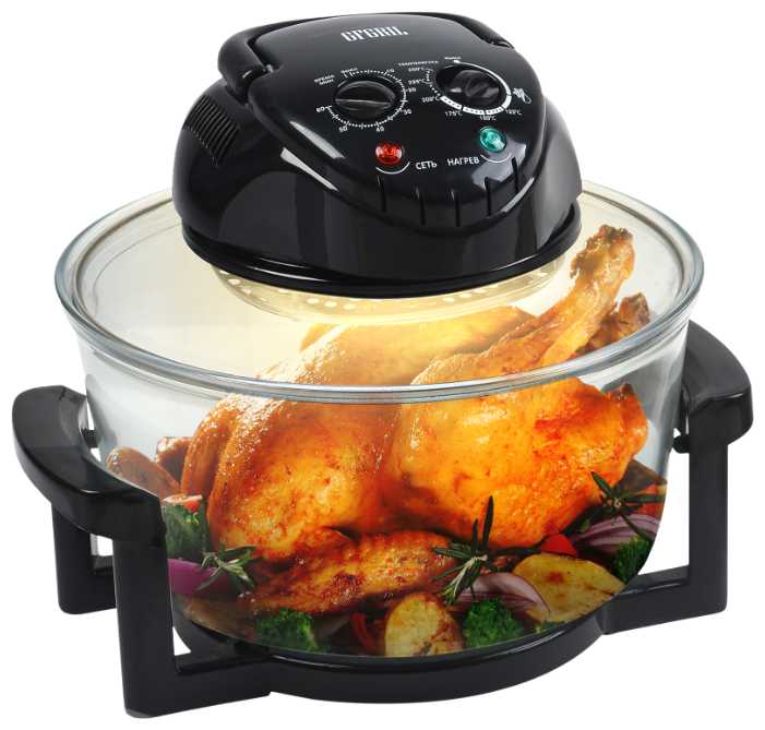 - Равномерный обдув горячим воздухом создаёт аппетитную корочку без пересушивания (например, сочные куриные бёдра).