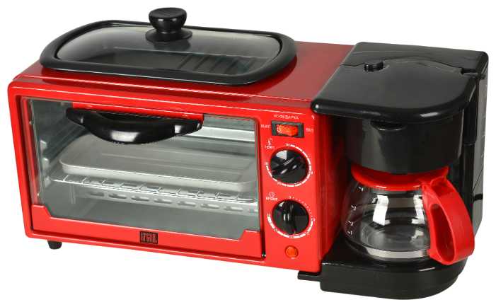 - Компактность и многофункциональность (3-в-1: духовка, гриль, кофеварка):