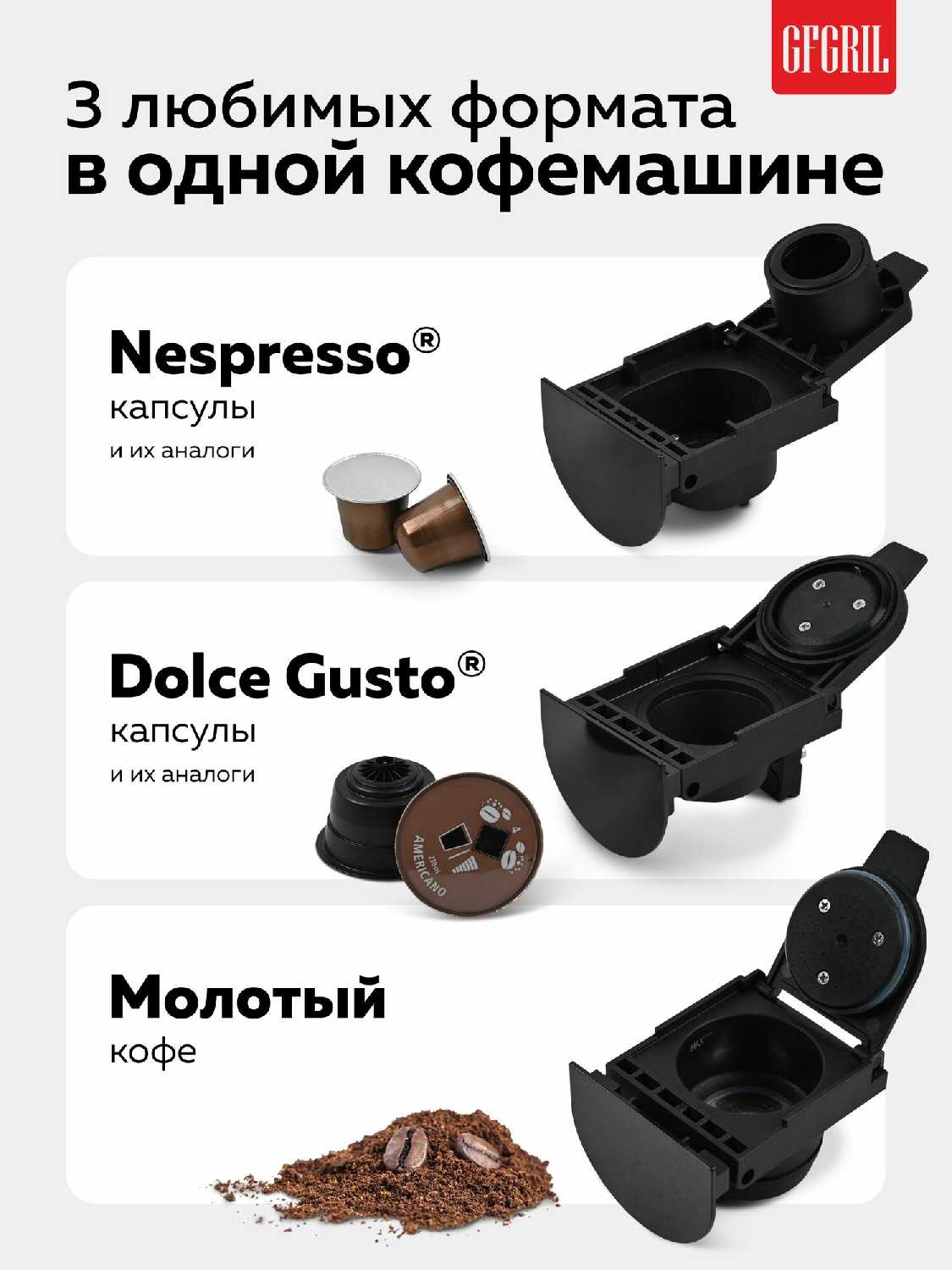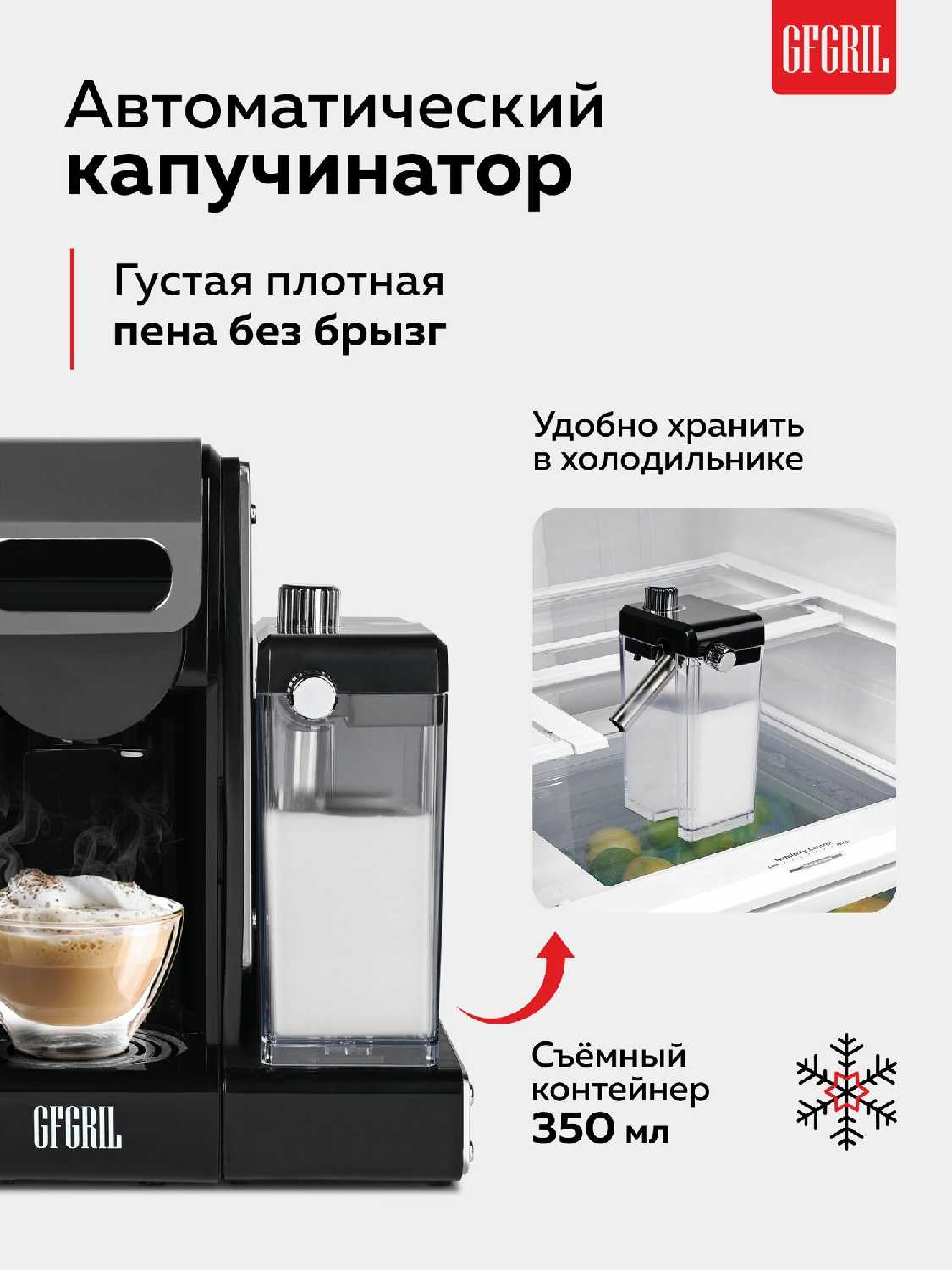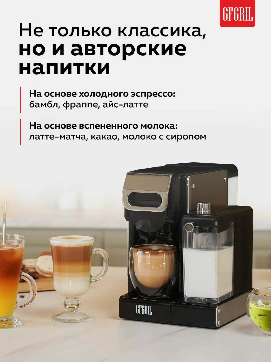 - + Меня все устраивает. Есть капучино и латте это все что мне нужно. Удобно и понятно в использовании. Единственное не могу найти капсулы под себя. А еще большой плюс что здесь 2 вида капсул и можно еще молотый кофе. Есть капучинатор. За свои деньги находка!!! 100 из 100