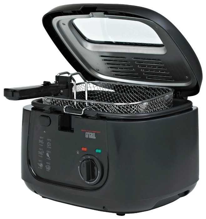 - Объём масла 2-2.5 л позволяет готовить большие партии без частой смены.